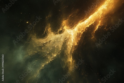 The watermark will not be included on Canvas Print.: Vibrant nebula with glowing golden features in the depths of space, nebula space animate background