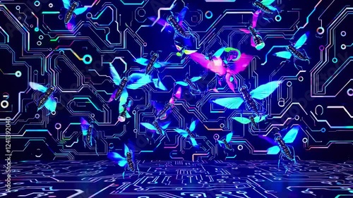 Canvas Prints vibrant neon butterflies hover above an intricate circuit board design, symbolizing the fusion of te - Canvas Prints Canvas Prints vibrant neon butterflies hover above an intricate circuit board design, symbolizing the fusion of te - Canvas Prints