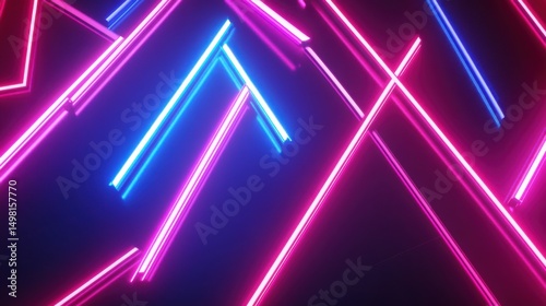 The watermark will not be included on Canvas Print.: Vibrant neon lights background with geometric patterns and shapes