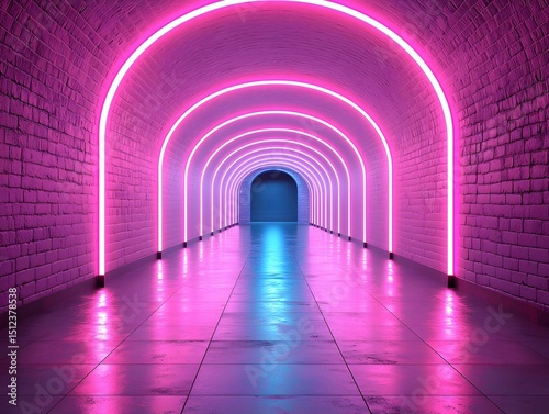 The watermark will not be included on Canvas Print.: Vibrant neon lit tunnel creates a dynamic showcase space