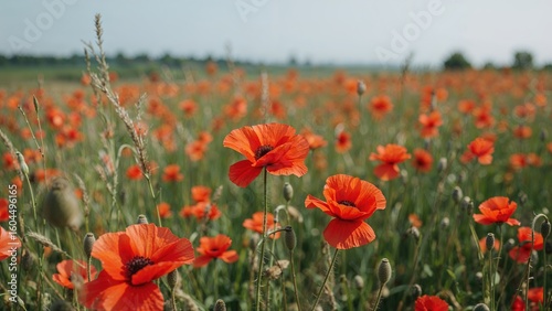 The watermark will not be included on Canvas Print.: Vibrant red poppies flourishing in an open field