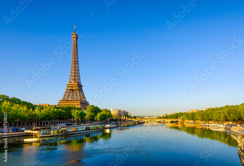 Canvas Prints view of eiffel tower and river seine at sunrise in paris, france. eiffel tower is one of the most ic - Canvas Prints Canvas Prints view of eiffel tower and river seine at sunrise in paris, france. eiffel tower is one of the most ic - Canvas Prints
