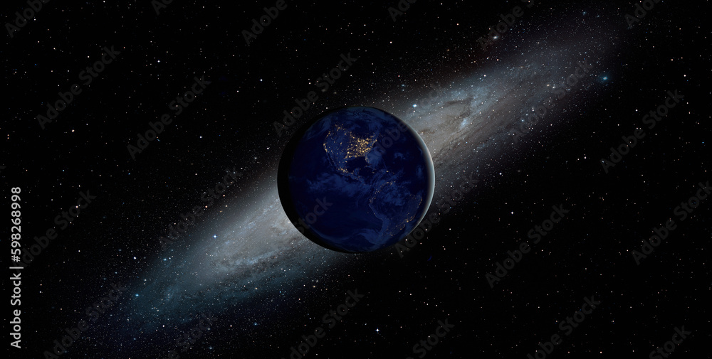 Canvas Print : View of the pplanet earth from space with the andromeda galaxy in the background " elements of this