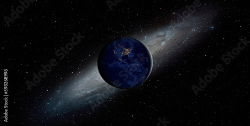 Canvas Prints view of the pplanet earth from space with the andromeda galaxy in the background