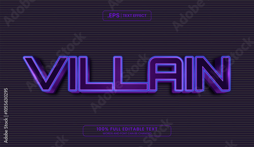 The watermark will not be included on Canvas Print.: Villain text effect on dark striped background - editable 3d text effect vector illustration