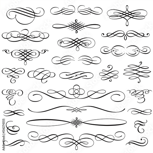 The watermark will not be included on Canvas Print.: Vintage calligraphic design elements swirls vignettes