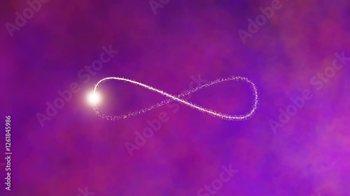 The watermark will not be included on Canvas Print.: Violet blurred cosmos cloud with golden infinite symbol loop animation - concept infinity -
