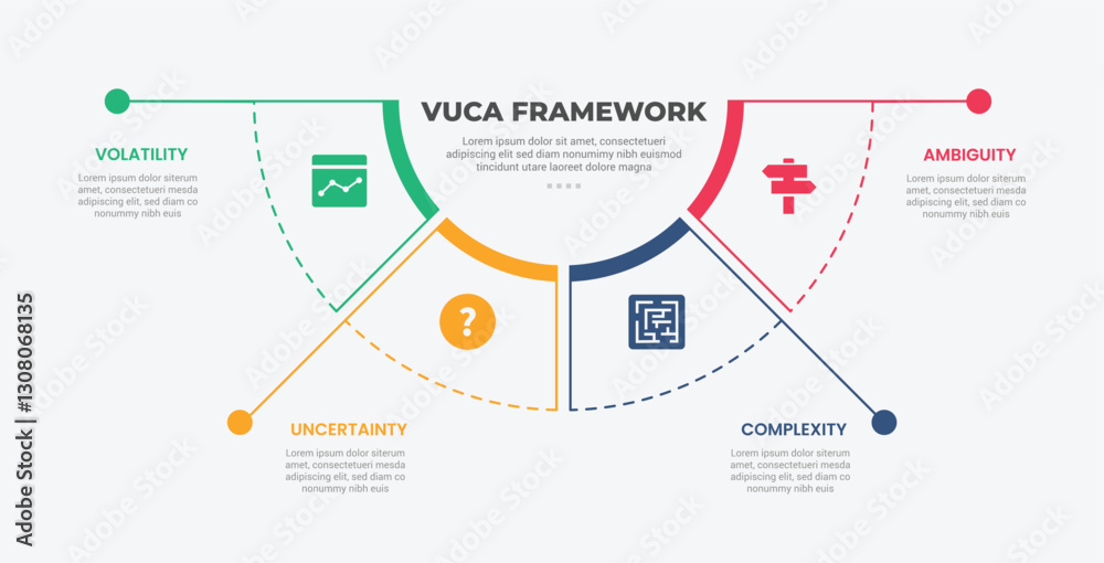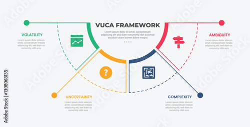 The watermark will not be included on Canvas Print.: Vuca world model infographic outline style with 4 point template with half circle pie chart separate
