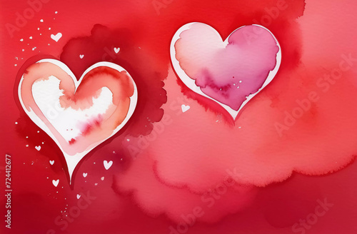 The watermark will not be included on Canvas Print.: Watercolor hearts on a red background - background for your design with copy space - generative ai