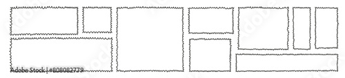 The watermark will not be included on Canvas Print.: Wavy and scalloped frame squiggle lines - outlines rectangle and square with curved borders - flat vec