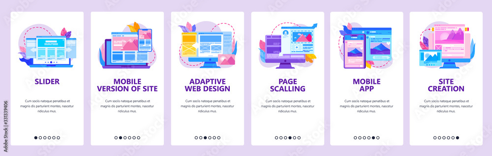 The watermark will not be included on Canvas Print.: Website and mobile app onboarding screens vector template