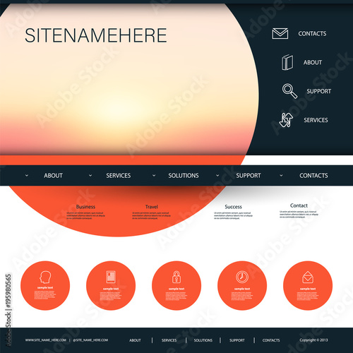 The watermark will not be included on Canvas Print.: Website design template for your business with sunset sky image background - clouds, sunlight