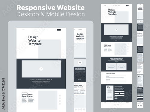 Canvas Print : Website design - responsive desktop and mobile wireframe - landing page template -