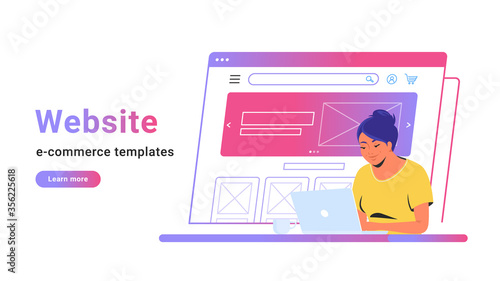 The watermark will not be included on Canvas Print.: Website e-commerce template to create electronic store online - creative vector illustration of cute