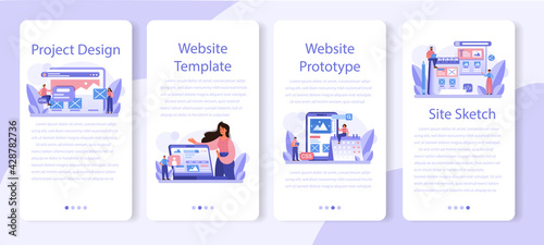 The watermark will not be included on Canvas Print.: Website prototyping mobile application banner set - web page modeling
