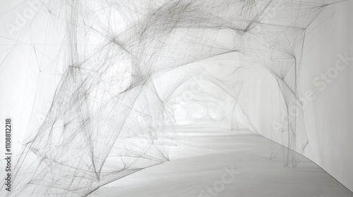 The watermark will not be included on Canvas Print.: White abstract technology background featuring elegant flowing waves with a futuristic minimal desig