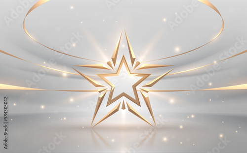 The watermark will not be included on Canvas Print.: White and gold star shape template with light effect