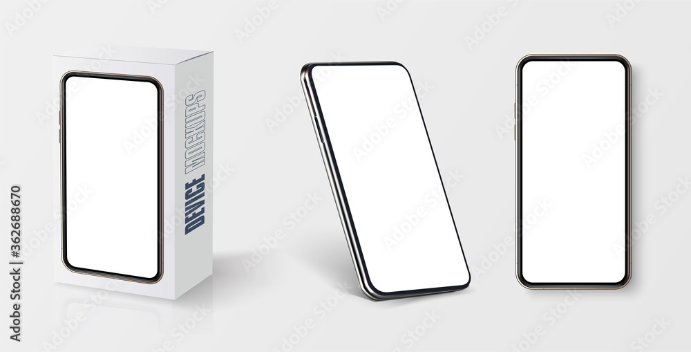 Canvas Print : White cardboard rectangular box mockup - front view - realistic smartphone mockup - cellphone frame wi