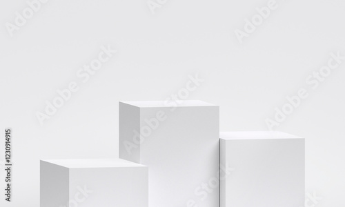 The watermark will not be included on Canvas Print.: White product display podium in studio room, for display presentation