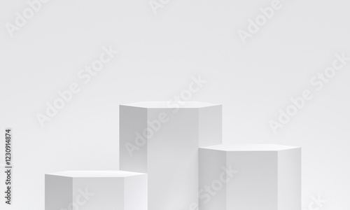 The watermark will not be included on Canvas Print.: White product display podium in studio room, for display presentation