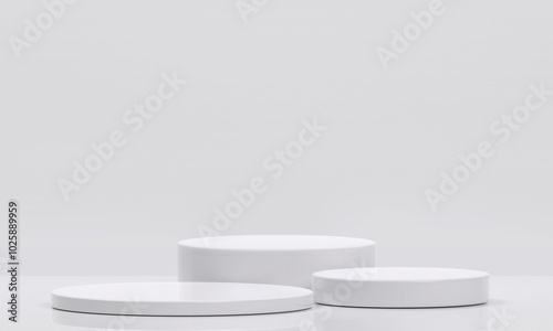 The watermark will not be included on Canvas Print.: White product display podium in studio room, for display presentation