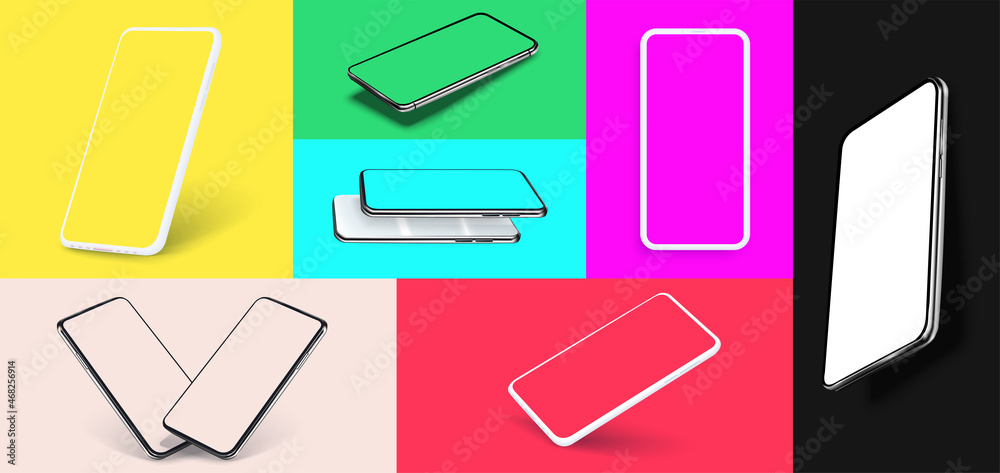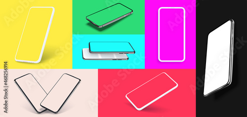 Canvas Prints white smartphone display screen in the rotated position on different fashionable and modern backgrou