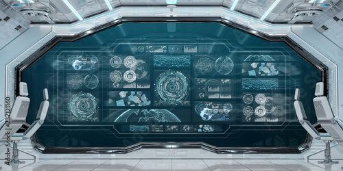 Canvas Prints white spaceship interior with control panel digital screens 3d rendering