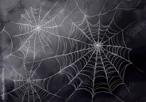 The watermark will not be included on Canvas Print.: White spider webs on a black background halloween style design generative ai