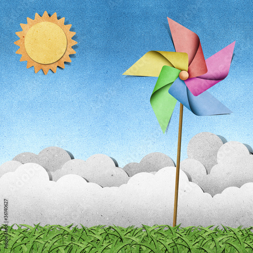 Canvas Prints windmill on grass recycled papercraft background - Canvas Prints Canvas Prints windmill on grass recycled papercraft background - Canvas Prints