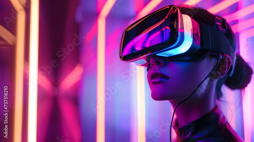 The watermark will not be included on Canvas Print.: Woman using vr googles