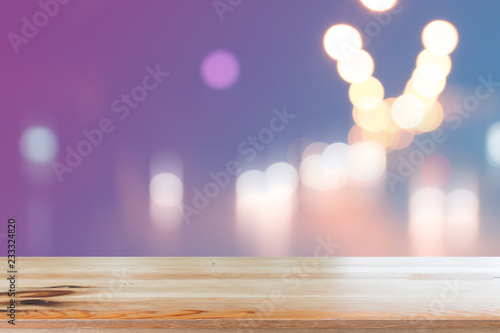 Canvas Prints wooden desk with blurred light bokeh abstract background