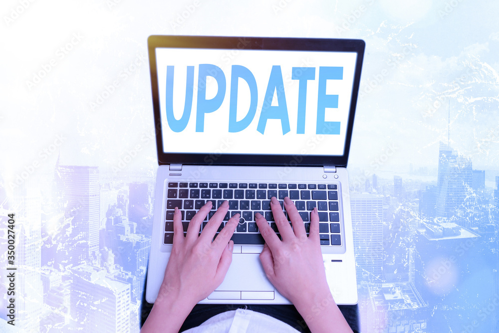 The watermark will not be included on Canvas Print.: Word writing text update - business photo showcasing make something more modern adding new facts chan