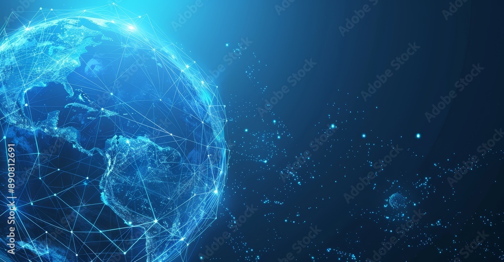 Canvas Print : World globe with connected dots symbolizing global connection, communication and network - planet ear
