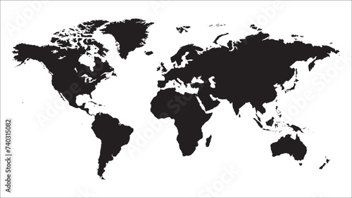 The watermark will not be included on Canvas Print.: World map black solid on isolated background