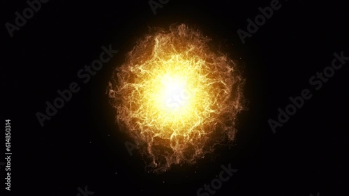 The watermark will not be included on Canvas Print.: Yellow energy orb background animation - 3d abstract energy sphere ball with orange power rays on dar