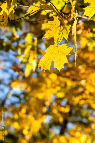 Canvas Prints yellow maple leaves and tree foliage in background