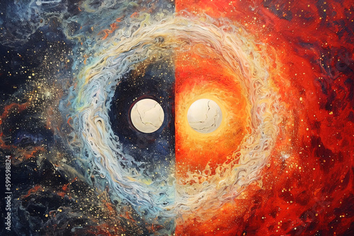 The watermark will not be included on Canvas Print.: Yin-yang in cosmos, concept of universe, esoteric and spirituality shape in space - generative ai -