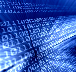 binary code stream. digital data codes, hacker coding and crypto matrix numbers flow. digitally blue