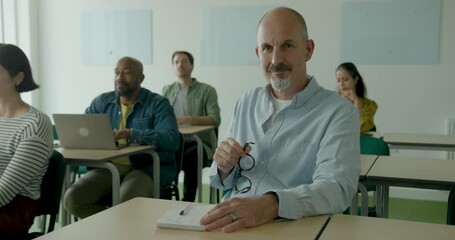 Portrait of Adult Student Learning in Classroom, Looking at camera