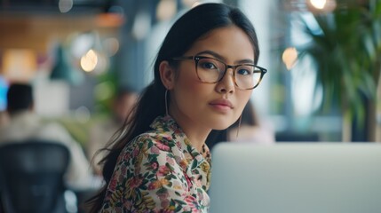 Woman Computer Paper. Young Latina Marketing Specialist in Creative Agency.