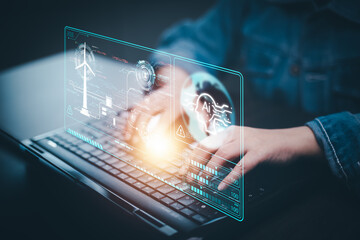 software developer or programmer coding program with laptop. data engineering intelligence innovatio