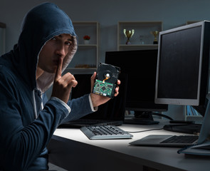 young hacker in data security concept