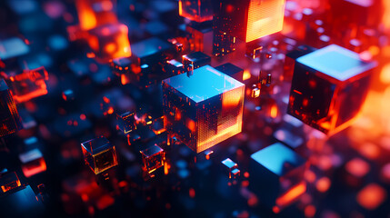 Abstract formation of stacked glittering cubes in harmonious colors design