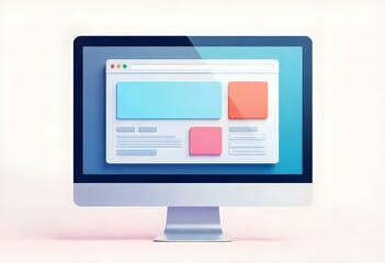 Browser window with menu, search bar, content blocks, pop-up card, and user portrait. Ideal for user interface design, navigation, user profile, website layout web design applications simple