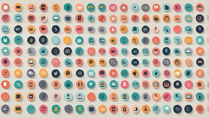 Concept of assembling a web development workplace around the background, An abstract representation of advertising and colorful object,  illustration showcasing virtual dashboard full analytics data.