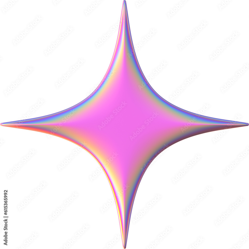 The watermark will not be included on Poster.: 3d abstract metal chrome star in a surreal style with a transparent background