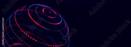 Poster 3d abstract sphere. sphere particles on dark background. science and technology. 3d