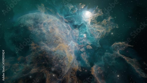 The watermark will not be included on Poster.: 3d animation - zooming into a nebula -