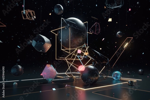 Poster 3d geometric form floating in space, with stars and planets visible in the background, created with  - Posters Poster 3d geometric form floating in space, with stars and planets visible in the background, created with - Posters