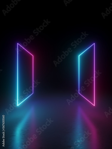 Poster 3d render, abstract minimal geometric background. blank rectangular shapes levitating, glowing neon